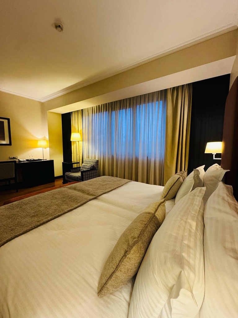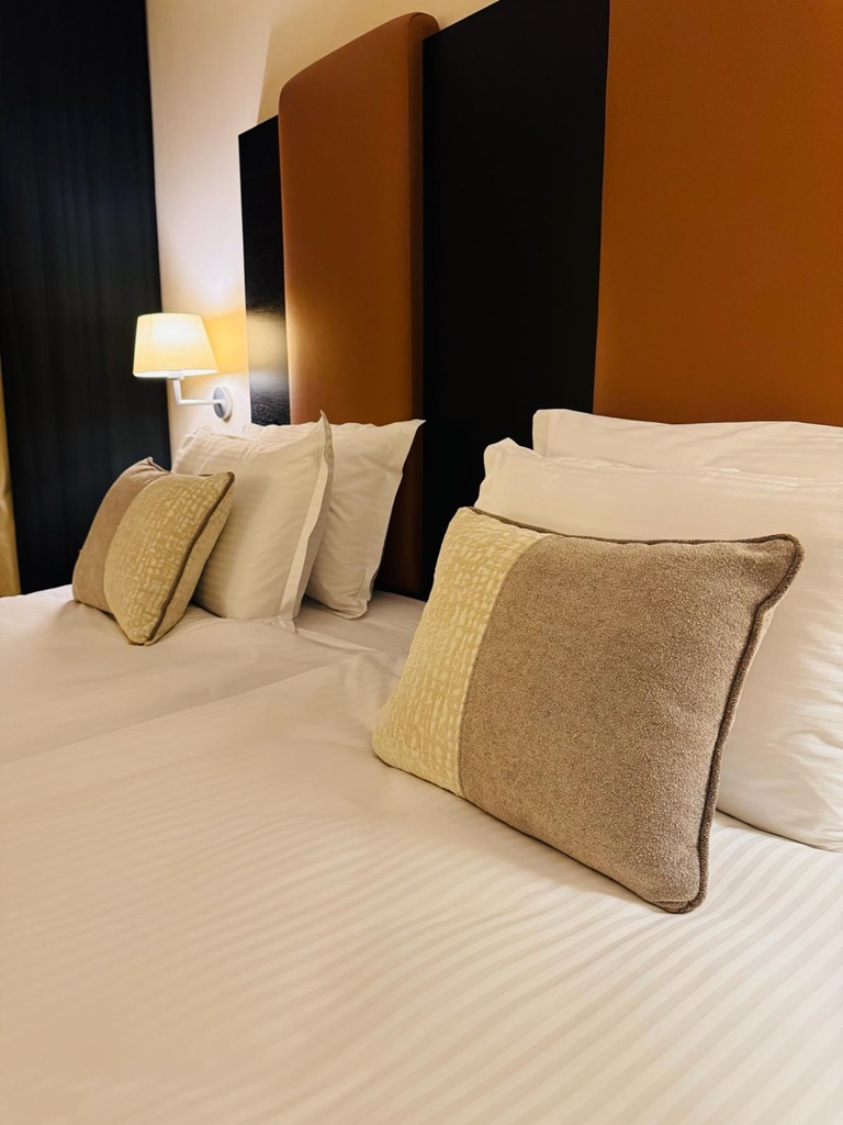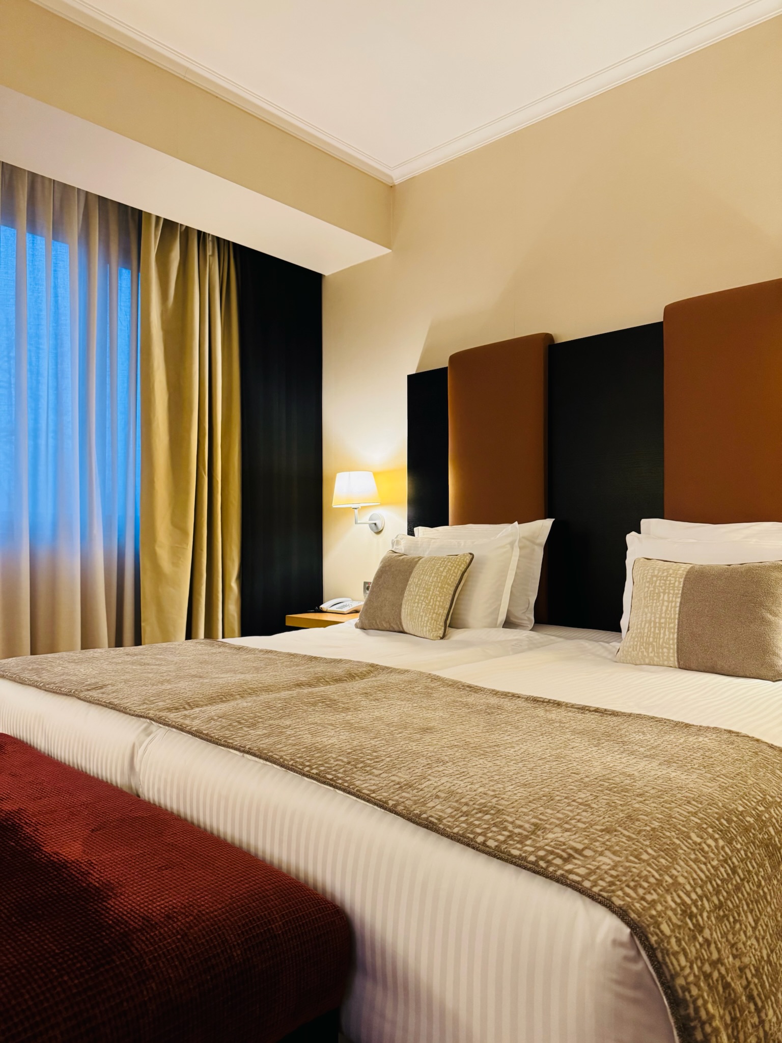 • Cameră dublă / twin – 27 m², pat queen sau 2 paturi twin, baie cu duș „walk-in” sau cadă, Wi-Fi rapid, TV cu ecran plat, aparat de cafea, minibar, produse Rituals, seif, birou de lucru. Unele camere au vedere spre oraș sau Parcul Regina Maria.