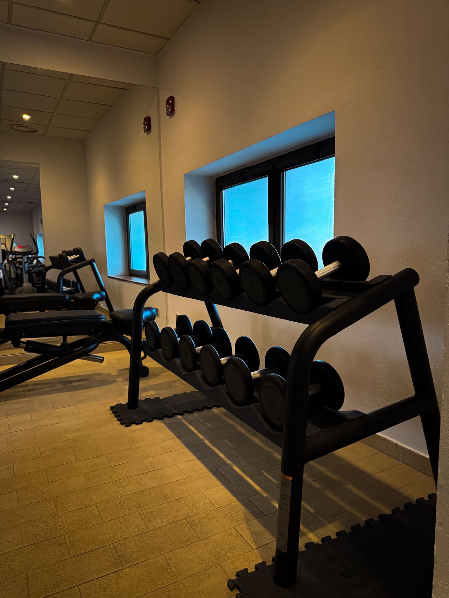 Rămâi activ pe durata șederii tale, în sala de fitness dotată cu echipamente esențiale pentru un antrenament complet.